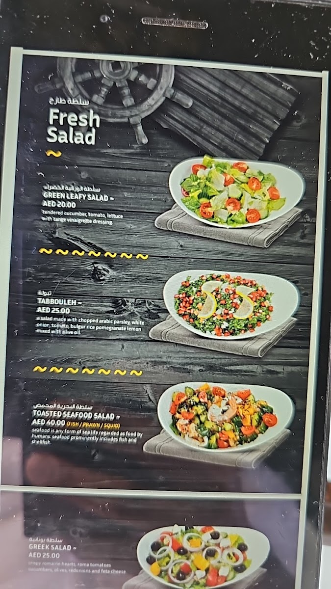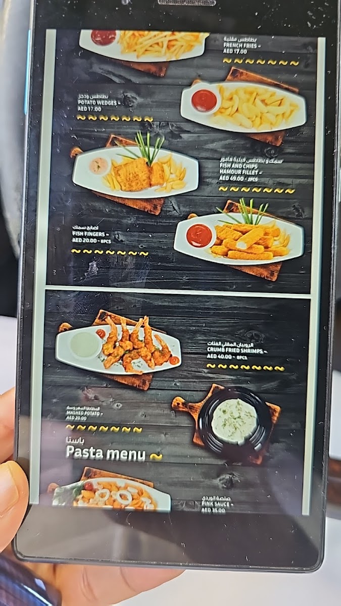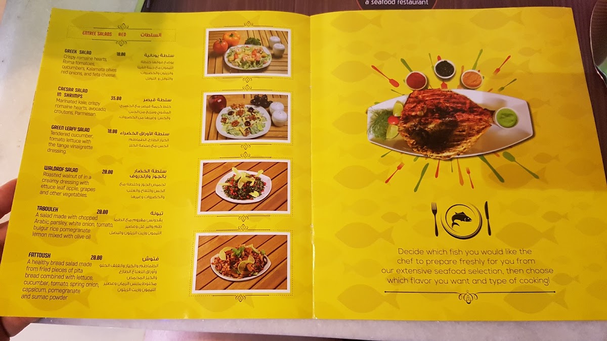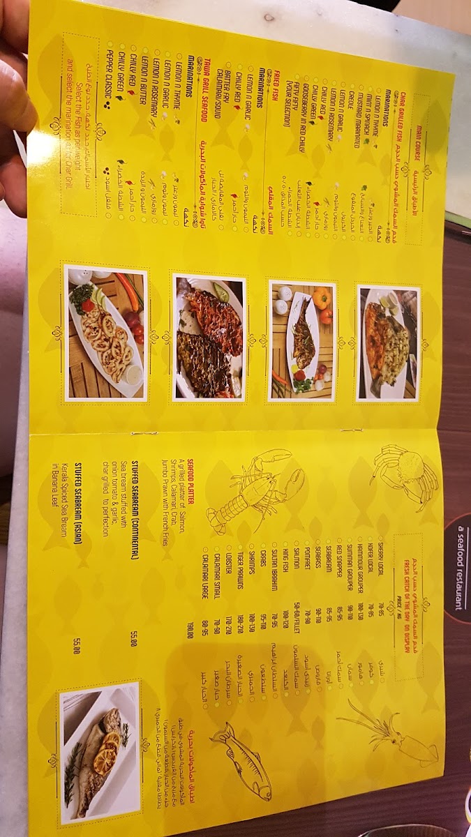 Located in Oud Metha, the menu offers a variety of seafood dishes alongside salads, curries, and beverages designed for casual dining. Guests can select from fresh fish prepared in multiple styles, including deep fried and grilled options, with accompanying sauces and sides.