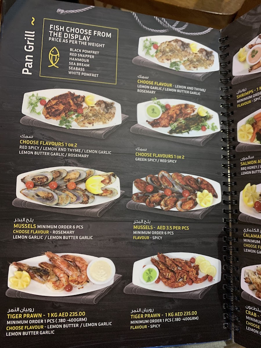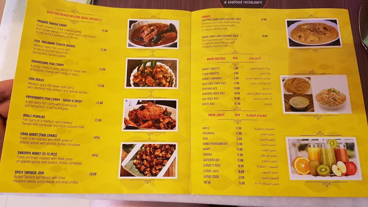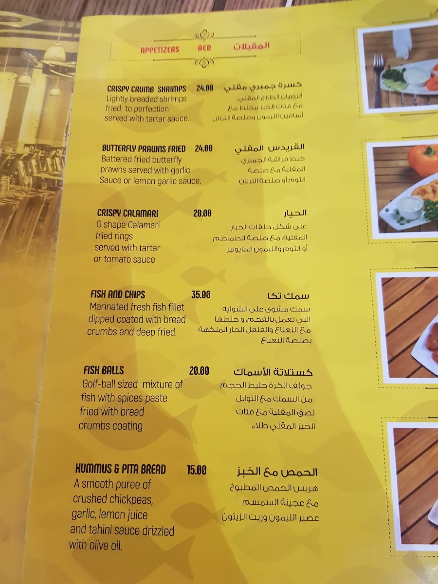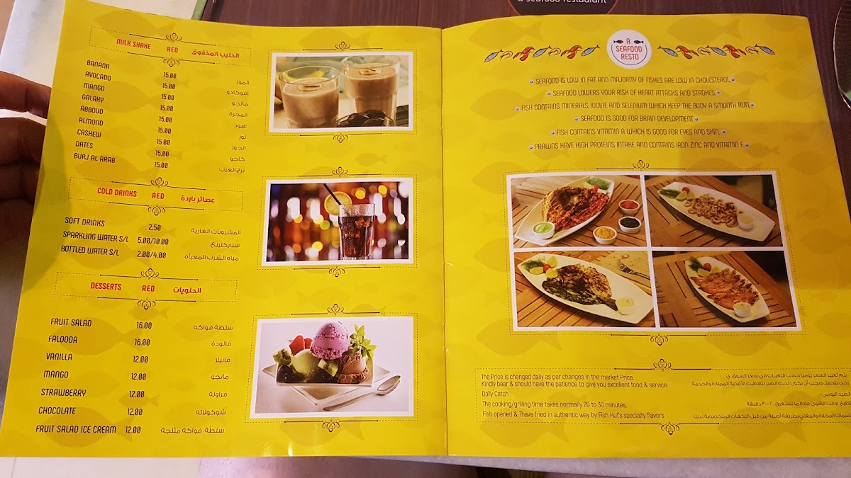 Located in Oud Metha, the menu offers a variety of seafood dishes alongside salads, curries, and beverages designed for casual dining. Guests can select from fresh fish prepared in multiple styles, including deep fried and grilled options, with accompanying sauces and sides.